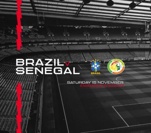 阿森纳官方宣布,巴西国家队与塞内加尔国家队将于11月25日在酋长球场进行友谊赛,是役成人票价23英镑起,16岁及以下儿童票价11英镑起,10月16日优先向阿森纳会员发行,17日面向公众出售。 巴西和塞内加尔已获得2026年世界杯正赛资格。