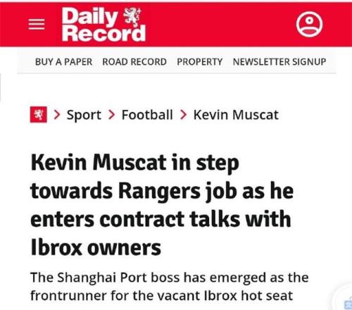 根据媒体DailyRecord的最新报道,上海海港主教练穆斯卡特正在成为苏格兰超级联赛豪门格拉斯哥流浪者新帅的领跑者,双方将进行合同谈判。