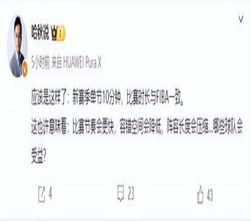 CBA确定重大改革,单节时间缩短为10分钟,有三利一弊!