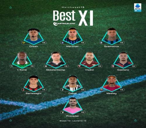 意甲第15轮最佳阵容:劳塔罗、巴尔泰萨吉、卡瓦尔入选 -